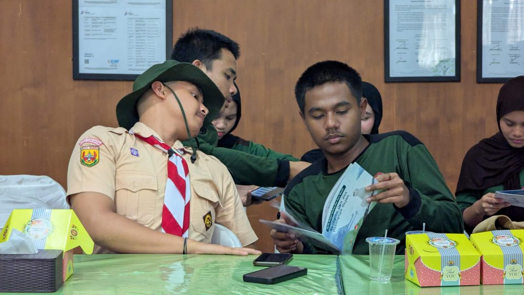 Tidak hanya menerima materi secara teori, para peserta juga mendapatkan pengalaman belajar yang interaktif. Mereka berkesempatan mencoba “Owa Tangga”, sebuah media edukasi yang diproduksi oleh Yayasan KIARA untuk membantu menjelaskan cara owa bergerak di kanopi hutan dan perannya dalam menyebarkan biji. Media ini dirancang agar mudah dipahami oleh berbagai kalangan, sekaligus menjadi alat bantu yang menyenangkan dalam pembelajaran konservasi.