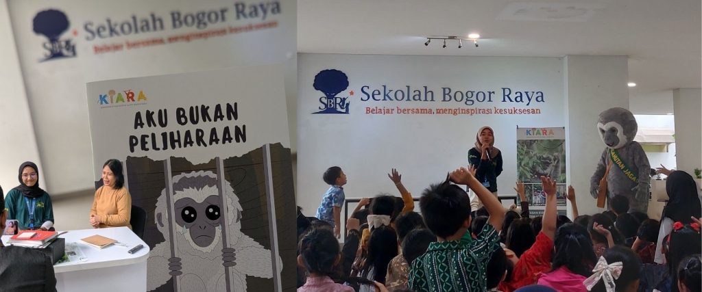 Tahun yang baru selalu dibuka dengan bulan bernama Januari, lahirnya hari primata Indonesia yang dirayakan setiap tanggal 30. Bertepatan dengan itu, tim edukasi KIARA memperoleh undangan kegiatan edukasi di Sekolah Bogor Raya (SBR) untuk belajar bersama siswa/i kelas empat (4) tentang topik ekosistem (memahami cara kerja ekosistem). Pas banget. KIARA juga sedang akan melaksanakan roadshow aku bukan peliharaan yang berisi tentang edukasi mengenai owa jawa dan habitatnya, ajakan untuk tidak memelihara owa jawa, daaaaan aktivitas membaca buku bersama yang tim edukasi bawa untuk diberikan kepada anak-anak.
